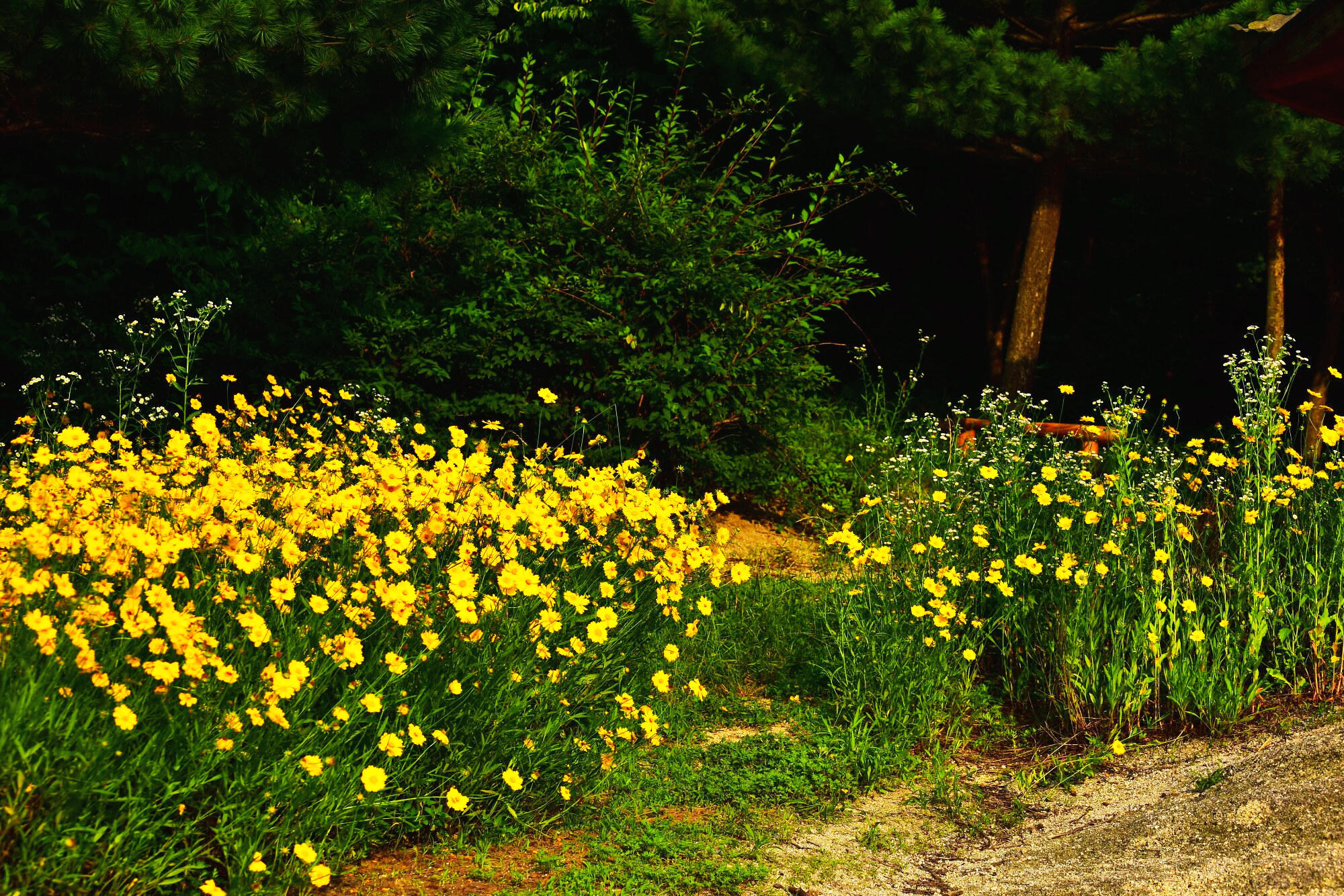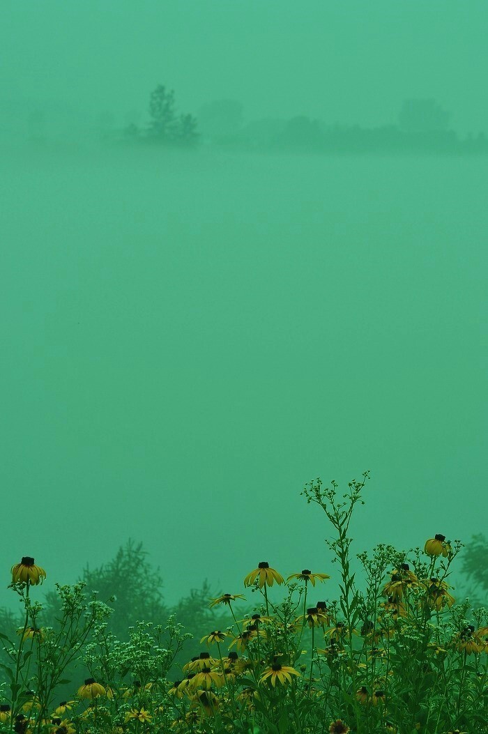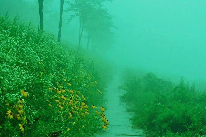 거기엔 자욱한 안개 속 루드베키아 꽃길이 있었습니다.